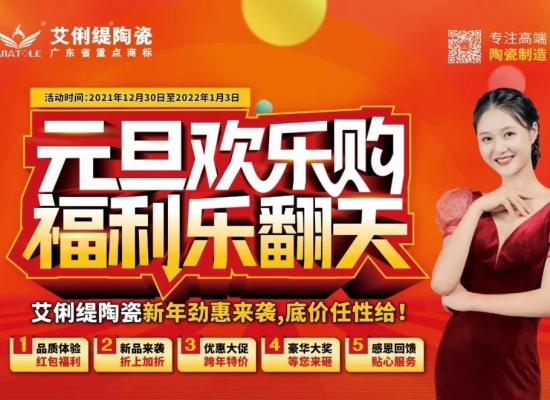 2022年元旦商机即将到来,广东省重点商标——艾俐缇陶瓷为了更好地配合经销商开展元旦促销活动,营造终端店面更浓郁的节日促销氛围,抢占市场。